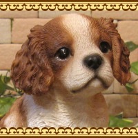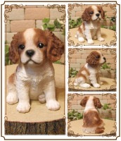 レジン製のリアルなキャバリア 子犬 お座りタイプの置物オーナメントです。