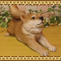 今にもアクビをしそうな、のびのびしているレジン製のリアルな柴犬の置物オーナメントです。