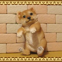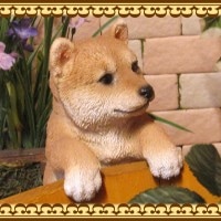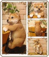 よいしょっ!と一生懸命よじ登ろうとしているようなレジン製のリアルな柴犬の置物オーナメントです。