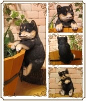 よいしょっ!と一生懸命よじ登ろうとしているようなレジン製のリアルな柴犬の置物オーナメントです。