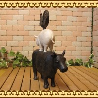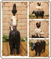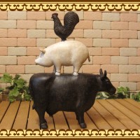 鳥、ブタ、ウシをブレーメンの音楽隊風したオブジェ