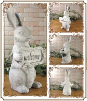 ウサギの置物 ラビット ウエルカムサインオーナメント ラージタイプ うさぎ ガーデニング オブジェ 店舗装飾 玄関先 お部屋のインテリアにお庭のオーナメントとしても♪