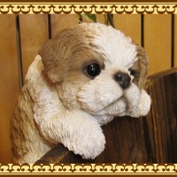 よいしょっ!と一生懸命よじ登ろうとしているようなレジン製のリアルなシーズーの置物オーナメントです。