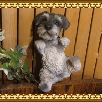 よいしょっ!と一生懸命よじ登ろうとしているようなレジン製のリアルなシュナウザーの置物オーナメントです。