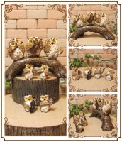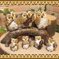 レジン製の縁起物ふくろうの良く出来た造形 ふくろうファミリー 音楽隊 細部まで良く作られていて雰囲気抜群 お部屋のアクセントとして飾ってみても良し 濡れても大丈夫なのでガーデニングなどの素材にしてもGOOD♪