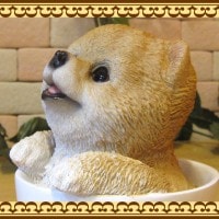 リアルな犬の置物 ポメラニアン ティーカップドッグ Aタイプ◇お部屋のインテリアにお庭のオーナメントとしても♪ 子いぬのフィギア ガーデニング オブジェ 玄関先