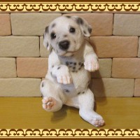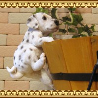 よいしょっ!と一生懸命よじ登ろうとしているようなレジン製のリアルなダルメシアンの置物オーナメントです。