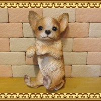 よいしょっ!と一生懸命よじ登ろうとしているようなレジン製のリアルなチワワの置物オーナメントです。