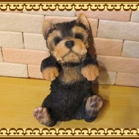 よいしょっ!と一生懸命よじ登ろうとしているようなレジン製のリアルなヨークシャーテリアの置物オーナメントです。