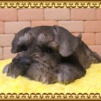今にも寝てしまいそうな、ウトウトしているレジン製のリアルなシュナウザーの置物オーナメントです。