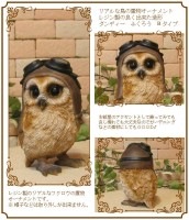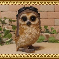縁起物で知られるレジン製のリアルなフクロウの置物です。 ゴーグルをかぶって、ダンディーな姿となって登場 ゴーグルの取り外しは出来ません。