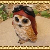 縁起物で知られるレジン製のリアルなフクロウの置物です。 ゴーグルをかぶって、ダンディーな姿となって登場 ゴーグルの取り外しは出来ません。