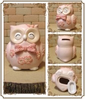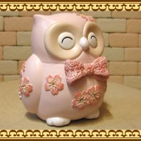 さくらとリボンで着飾った可愛いフクロウの貯金箱