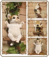 商品名 : 猫の置物 ブランコキャット Bタイプ ミケ みけねこオブジェ レジン製 ネコフィギュア インテリア ガーデニング素材