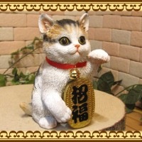 こちらは左手をあげて招福の小判を持っております。