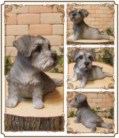 リアルな犬の置物 シュナウザー 休憩中!