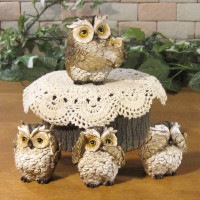 レジン製のふくろうの置物です。 それぞれのフクロウたちの仕草、表情にほっこりさせられます♪