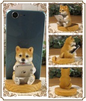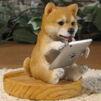 リアルな犬の置物 柴犬 スマホスタンド ドッグ Cタイプ 卓上 スマートフォン スマホホルダー お部屋のインテリアにお庭のオーナメントとしても♪ 子いぬのフィギア ガーデニング オブジェ 玄関先