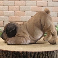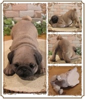 今にもアクビをしそうな、のびのびしているレジン製のリアルなパグの置物オーナメントです。