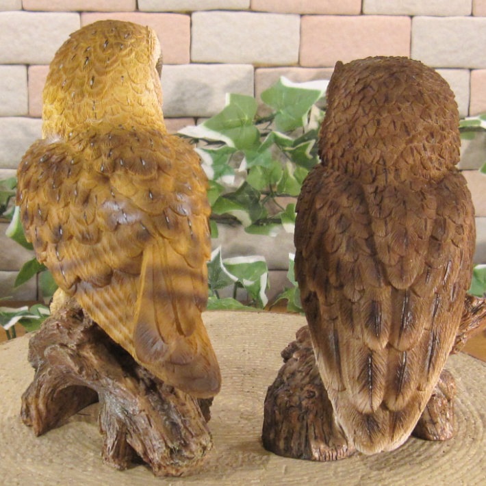 レジン製のフクロウの良く出来た造形ふくろう 2種セット細部まで良く作られていて雰囲気抜群お部屋のアクセントとして飾ってみても良し濡れても大丈夫なのでガーデニングなどの素材にしてもGOOD♪