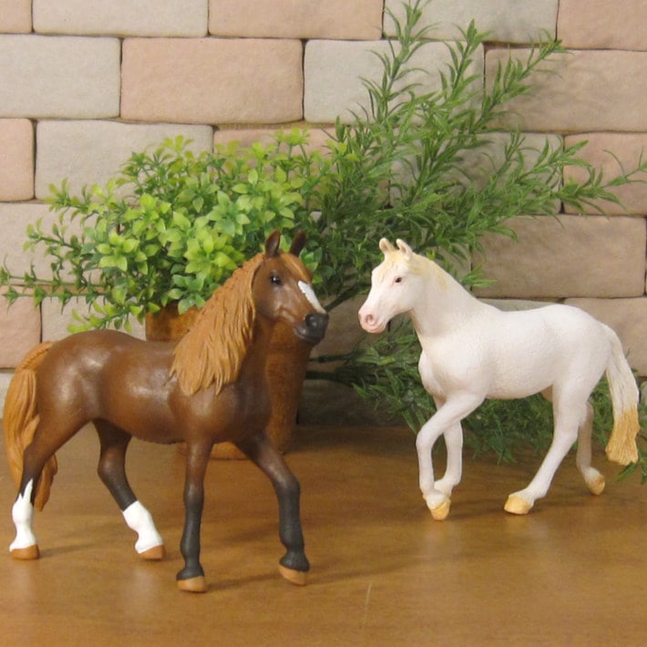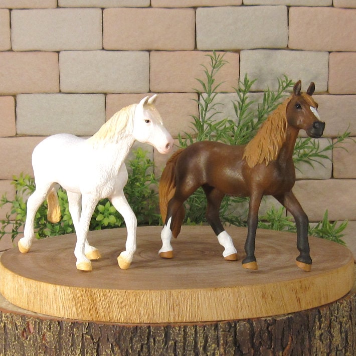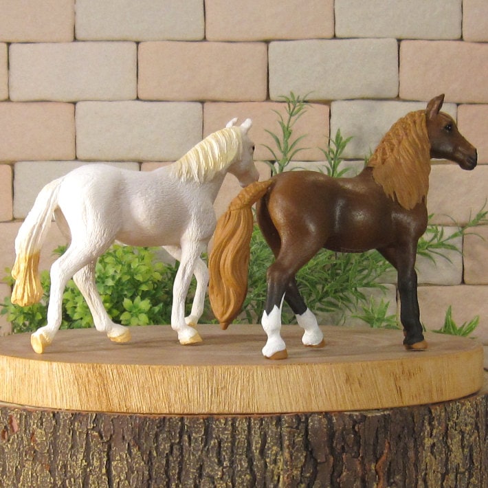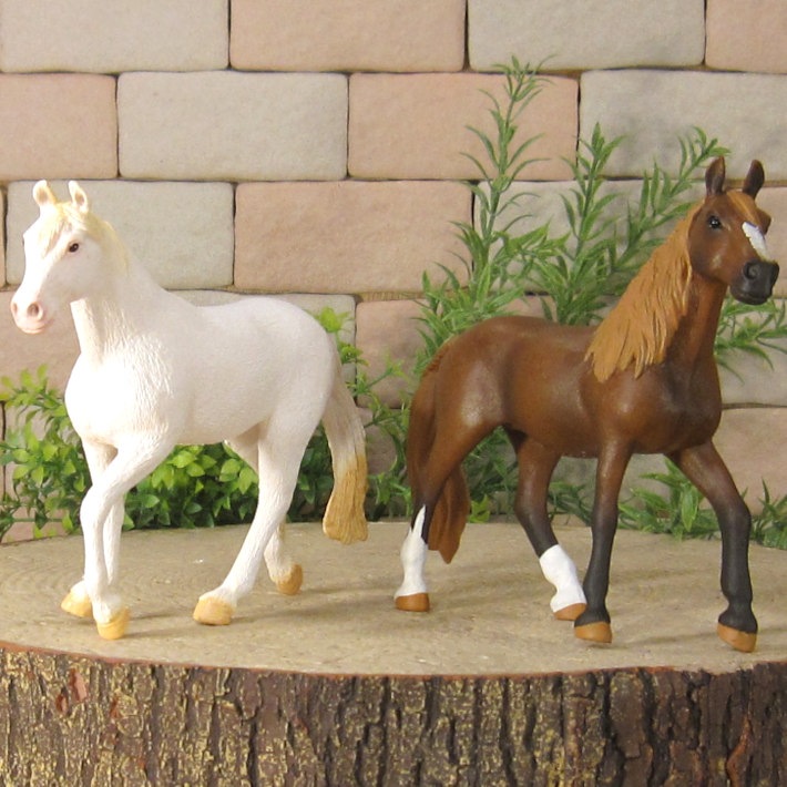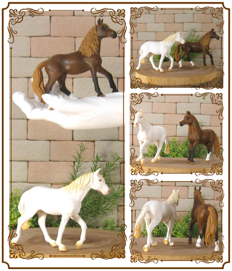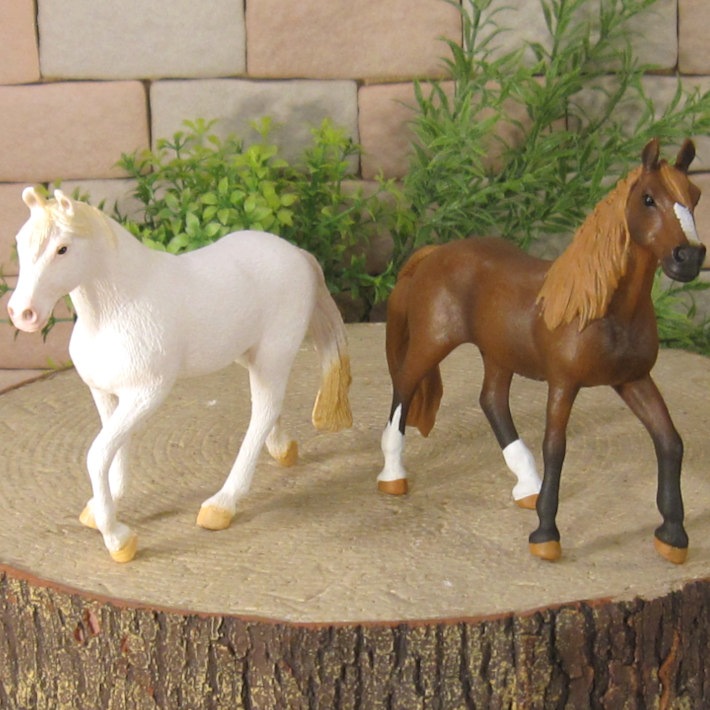 PVC製の馬の良く出来た造形 ウマ 2点セット 細部まで良く作られていて雰囲気抜群 お部屋のアクセントとして飾ってみても良し 植物等とご一緒に、ドール、情景ジオラマの小物に