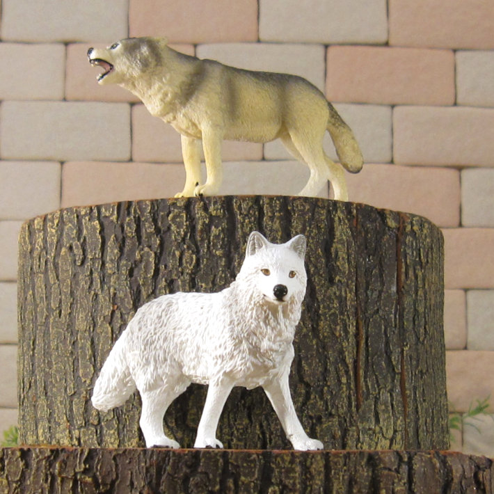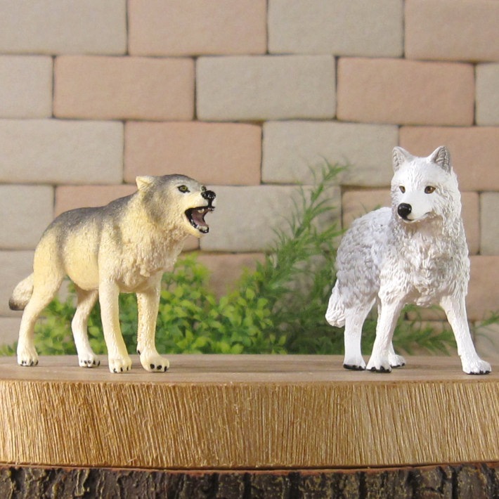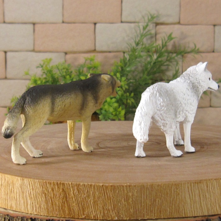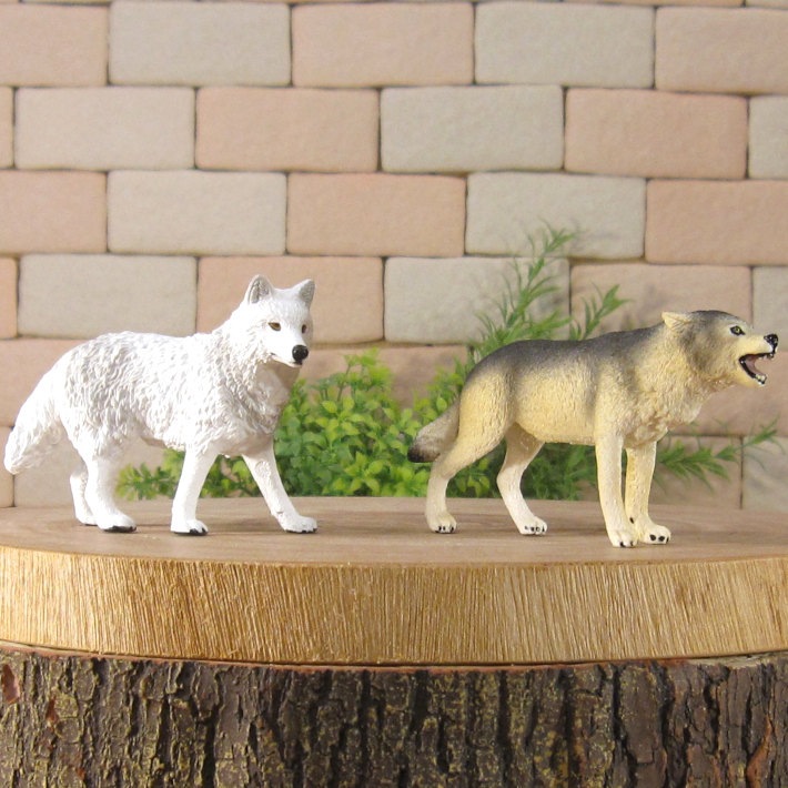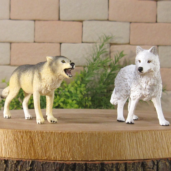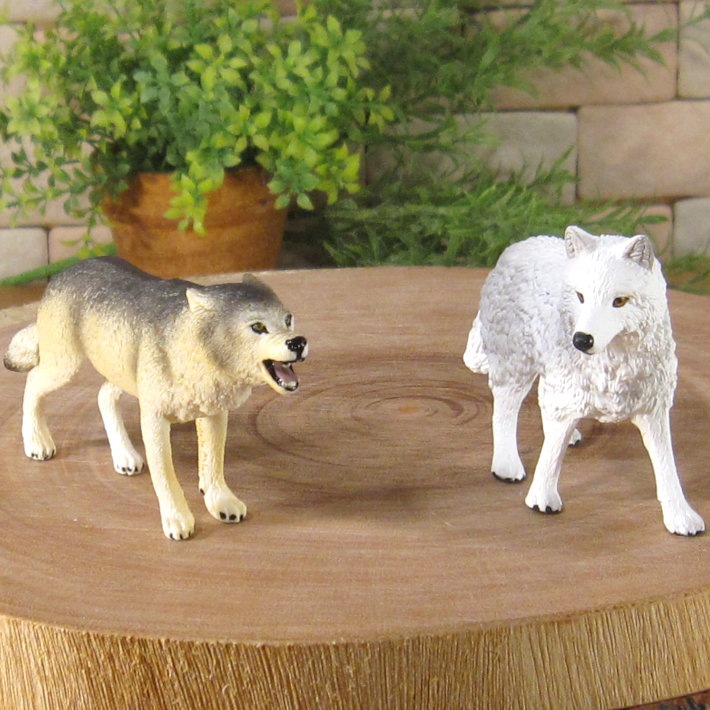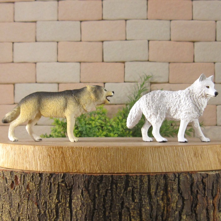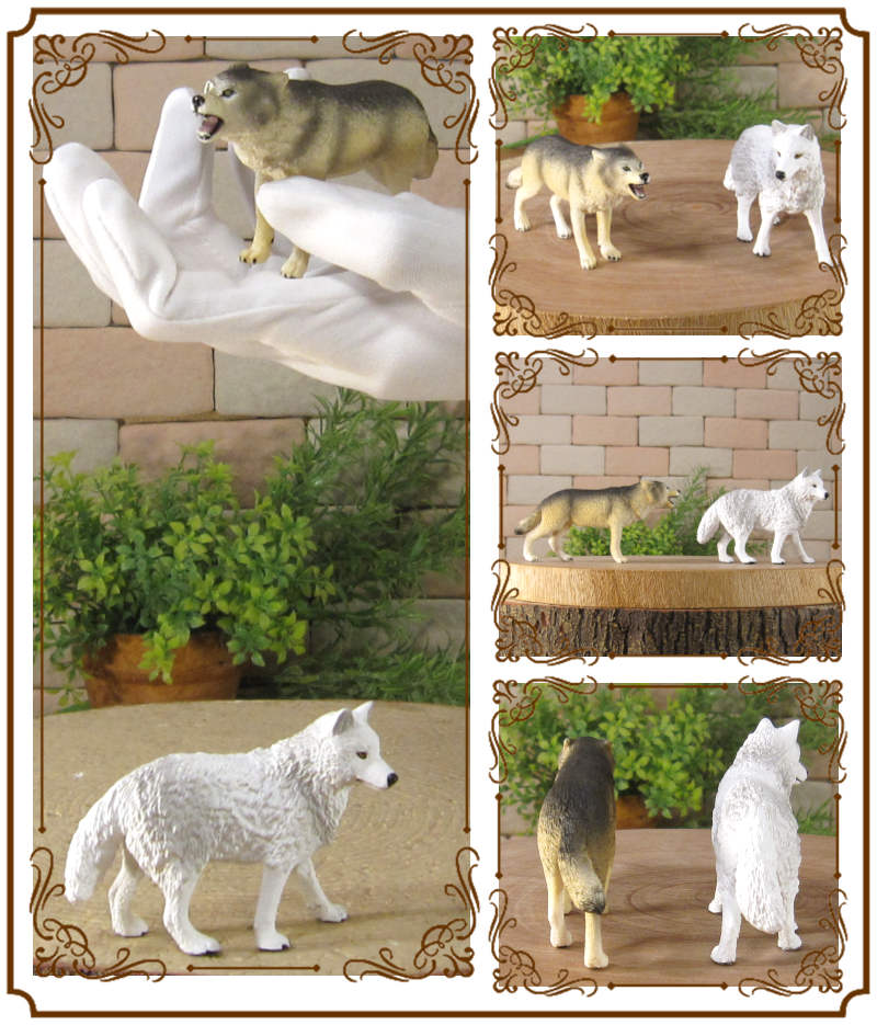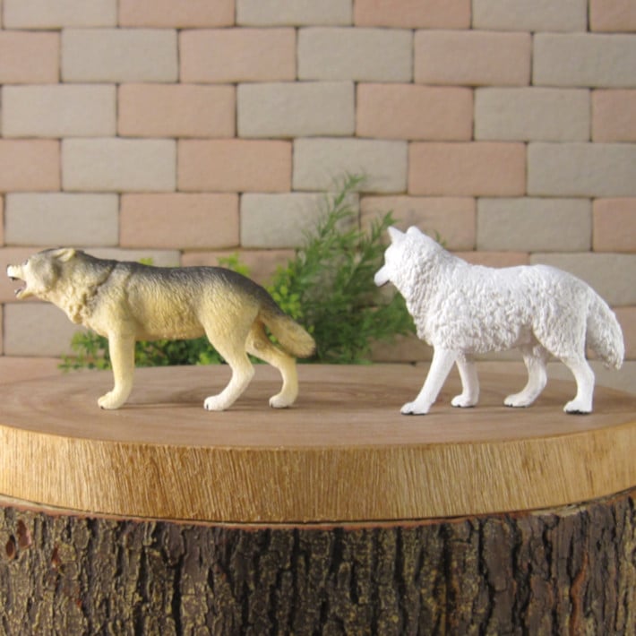 PVC製の狼の良く出来た造形 オオカミ 2種セット 細部まで良く作られていて雰囲気抜群 お部屋のアクセントとして飾ってみても良し 植物等とご一緒に、ドール、情景ジオラマの小物に